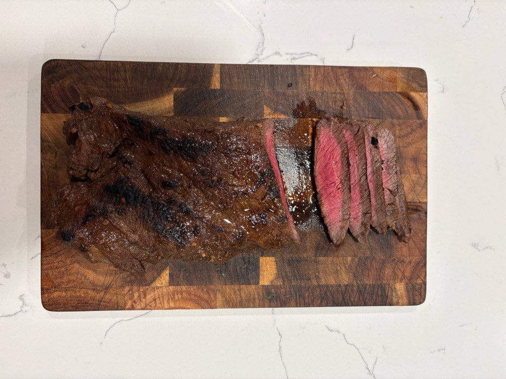 This steak is so versatile, it can be served over a salad, with a veggie and potato side, or even just by itself:)