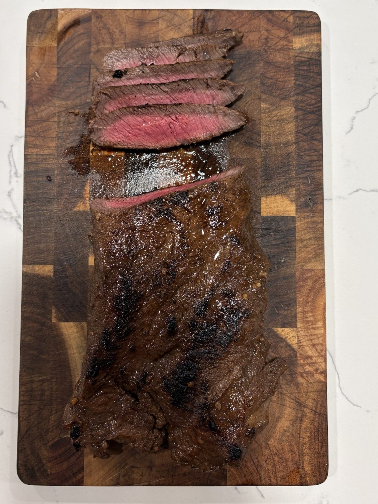 Remove the steak from the pan a let rest for a few minutes until slicing and enjoying!